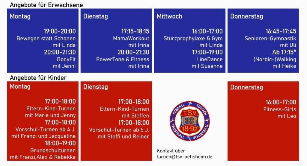 Am Mittwoch 19. April findet die diesjährige Versammlung der Mitglieder der Turnabteilung des TSV Ötisheim statt. Wir treffen uns um 18 Uhr in der TSV Vereinsgaststätte. Zu den Tagesordnungspunkten gehören […]