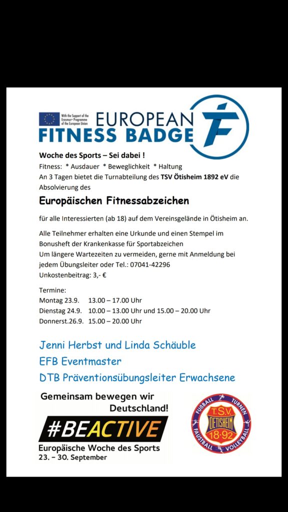 Komm vorbei und erhalte dein Europäisches Fitnessabzeichen!