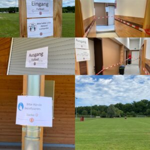 Unser Sportgelände ist nun weitgehend für die Wiederaufnahme des Trainingsbetriebs vorbereitet. Sowohl der Sportplatz als auch die Sporthalle sind startklar für die ersten Trainings nach der langen Pause. Natürlich werden diese Trainings noch nicht wieder in vollem Umfang stattfinden, aber wir versuchen nach und nach wieder mehr Normalität in unser Vereinsleben zu bringen und hoffen dabei auf die Unterstützung aller Mitglieder um einen reibungslosen Ablauf gewährleisten zu können.
