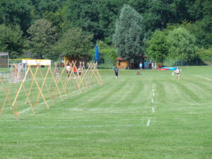 Gezeltet wird gegenüber vom Sportplatz. Hier ist ausreichend Platz für alle Teilnehmer.