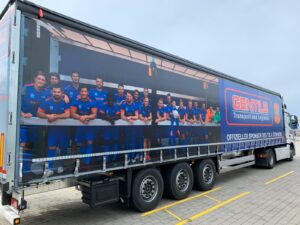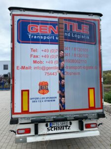 Unsere Herren sind ab sofort nicht nur auf den Sportplätzen der Region unterwegs, sondern auch auf Europas Strassen. Unser Sponsor Gentile Transport & Logistik hat die Plane für einen Auflieger mit ca. 14m Länge mit Bildern unserer Herren anfertigen lassen. Wenn Sie also demnächst unsere Jungs auf dem Auflieger über die Autobahn rollen sehen, it´s magic!