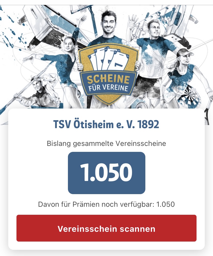 Nichtsdestotrotz haben wir auch gute Nachrichten: wir konnten bereits über 1000 Vereinsscheine bei Rewe sammeln. Macht bitte weiter so und unterstützt unseren Verein auch in den nächsten Wochen. So können wir tolle Prämien für den Verein ergattern 💪
